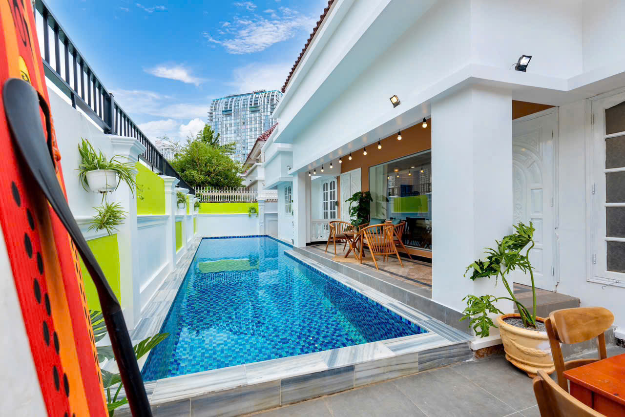 Hồ bơi 45m2 + sân vườn rộng rãi + bếp nướng BBQ