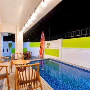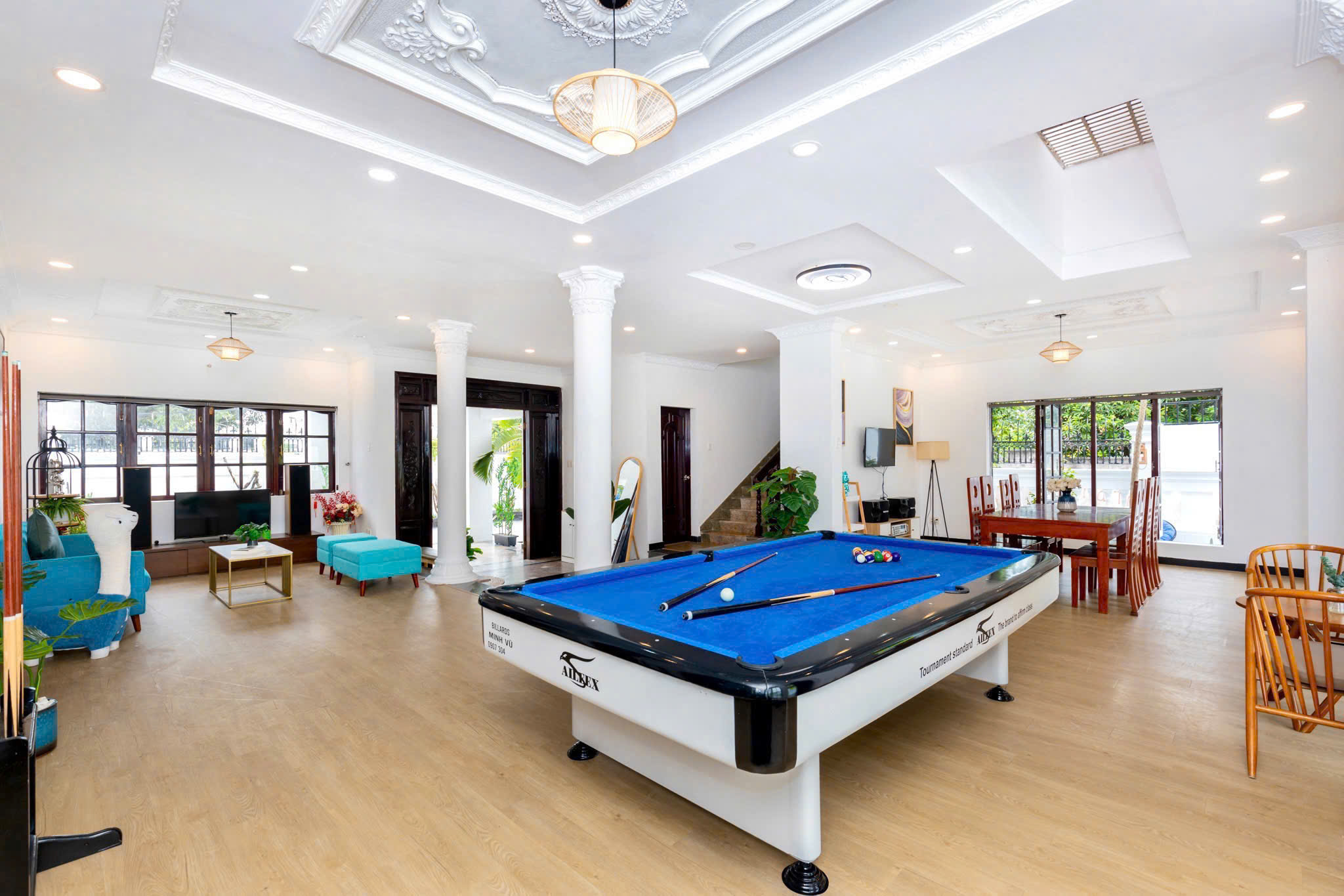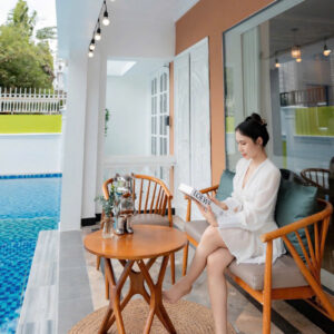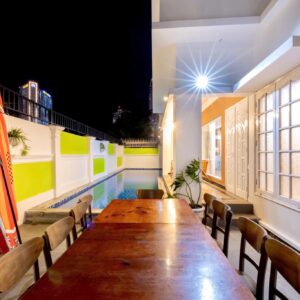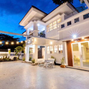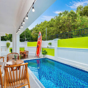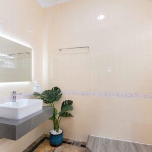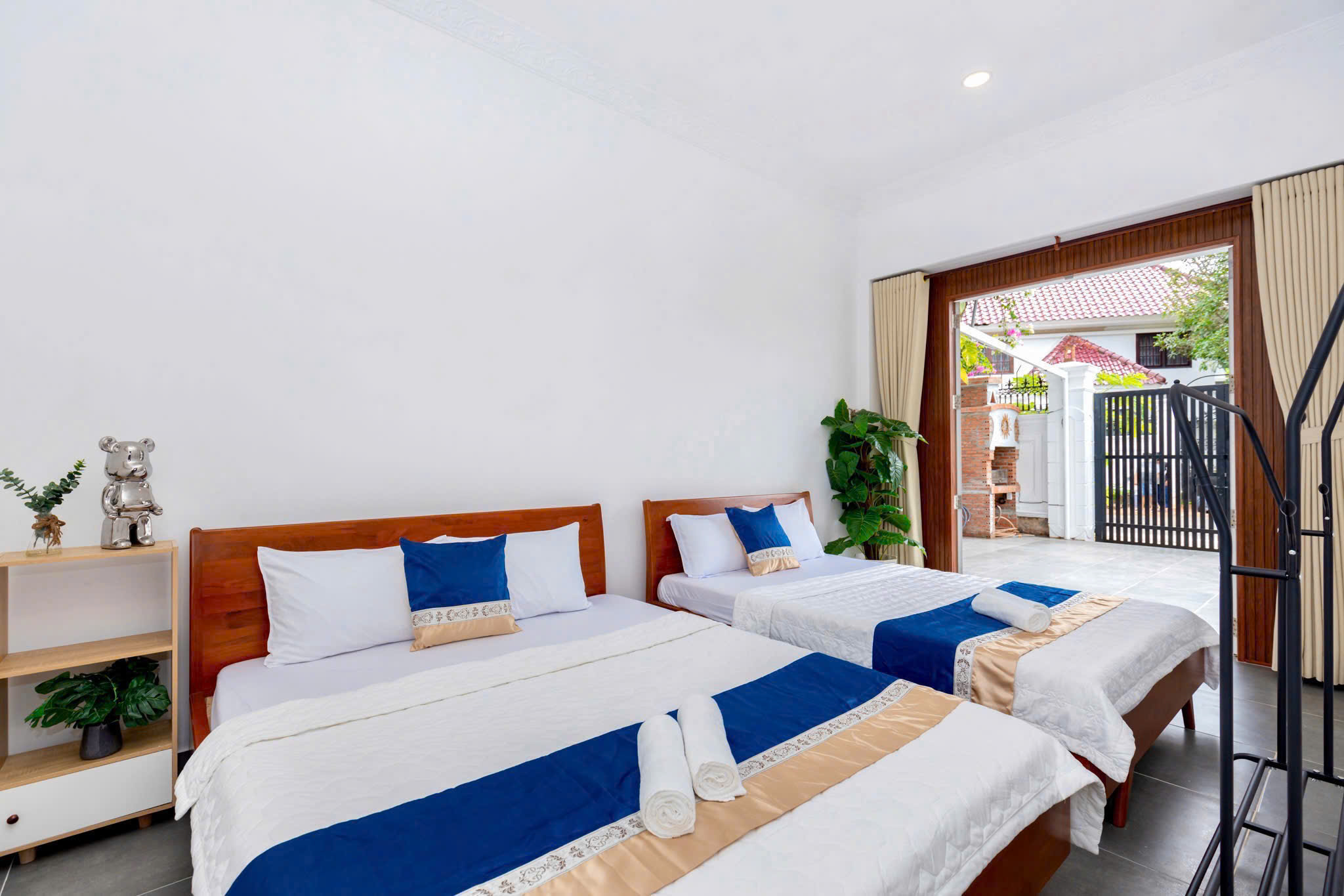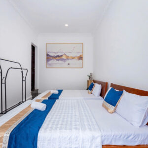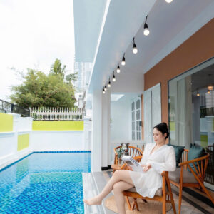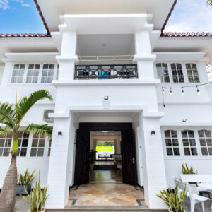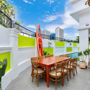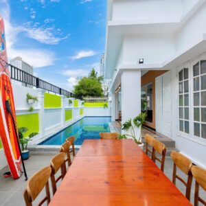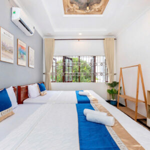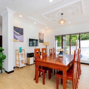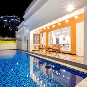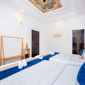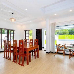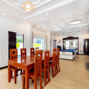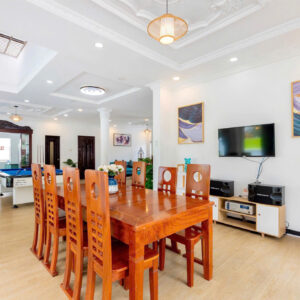 Villa bao gồm 6 phòng ngủ ( 2 phòng dưới trệt + 4 phòng lầu 1 ) – ( 5 WC trong phòng khép kín ( 4 phòng 1 giường và 2 phòng 2 giường + 4 nệm thêm)