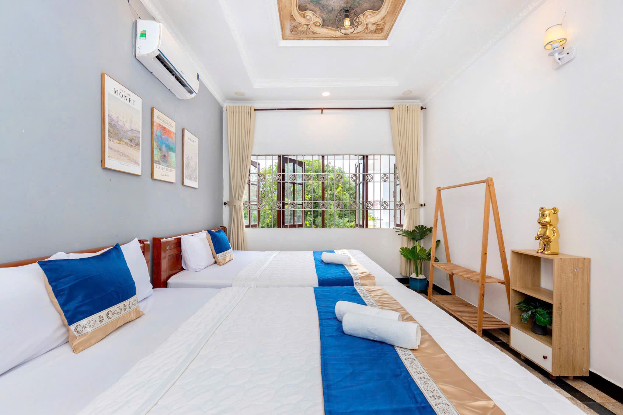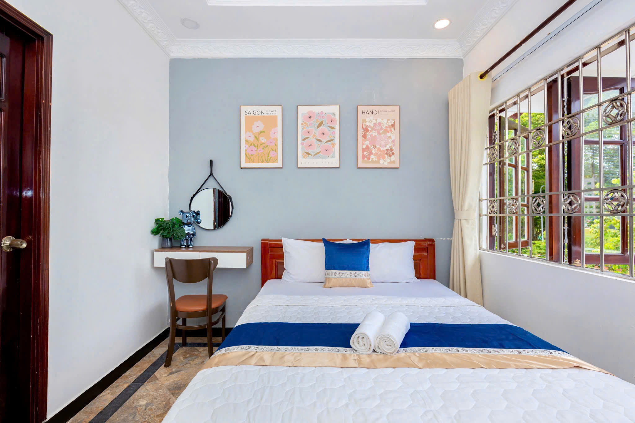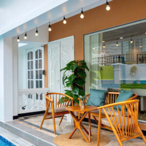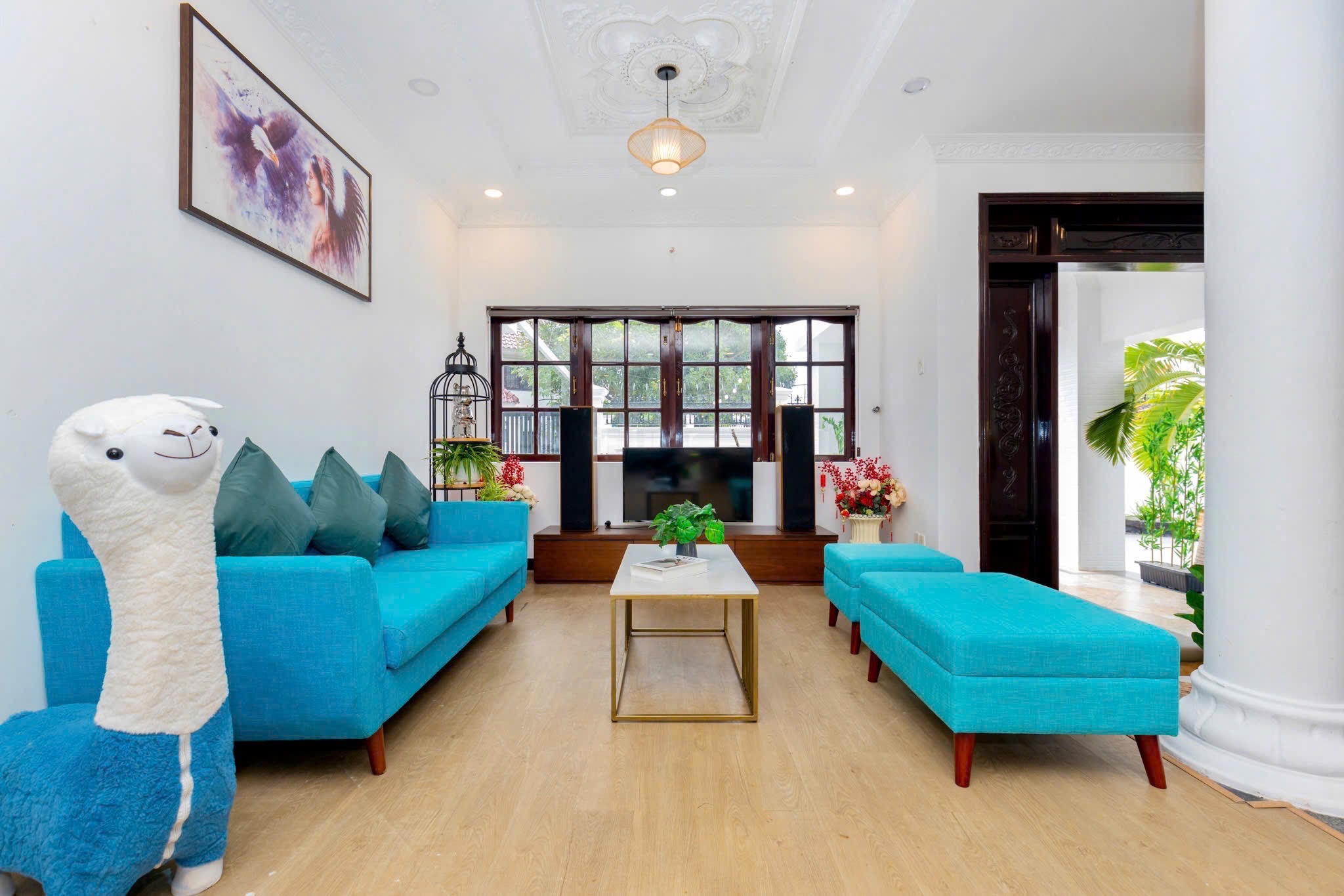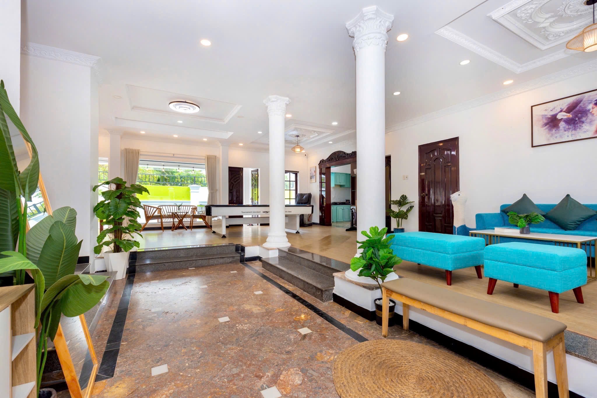 Villa bao gồm 6 phòng ngủ ( 2 phòng dưới trệt + 4 phòng lầu 1 ) – ( 5 WC trong phòng khép kín ( 4 phòng 1 giường và 2 phòng 2 giường + 4 nệm thêm)
