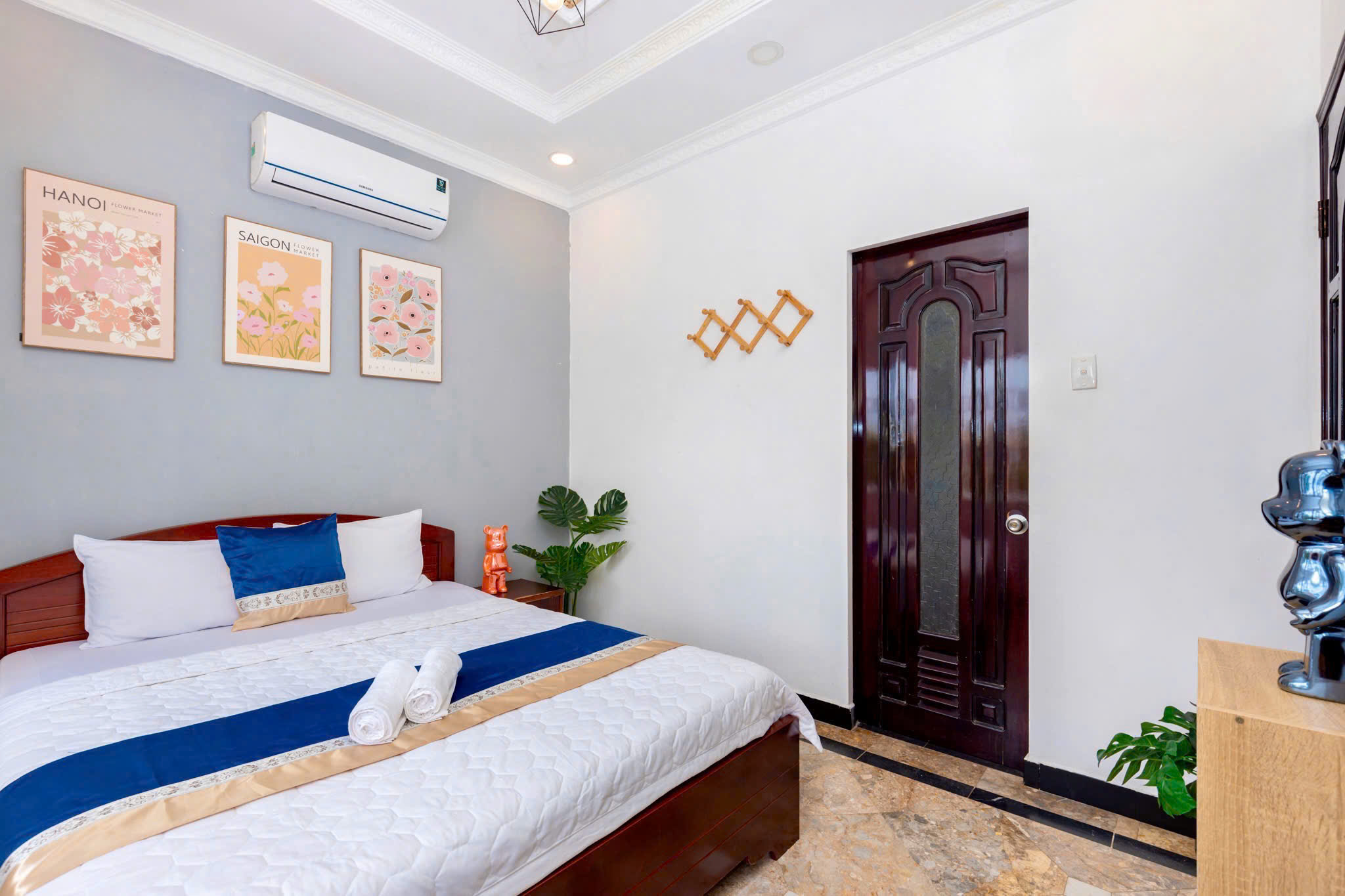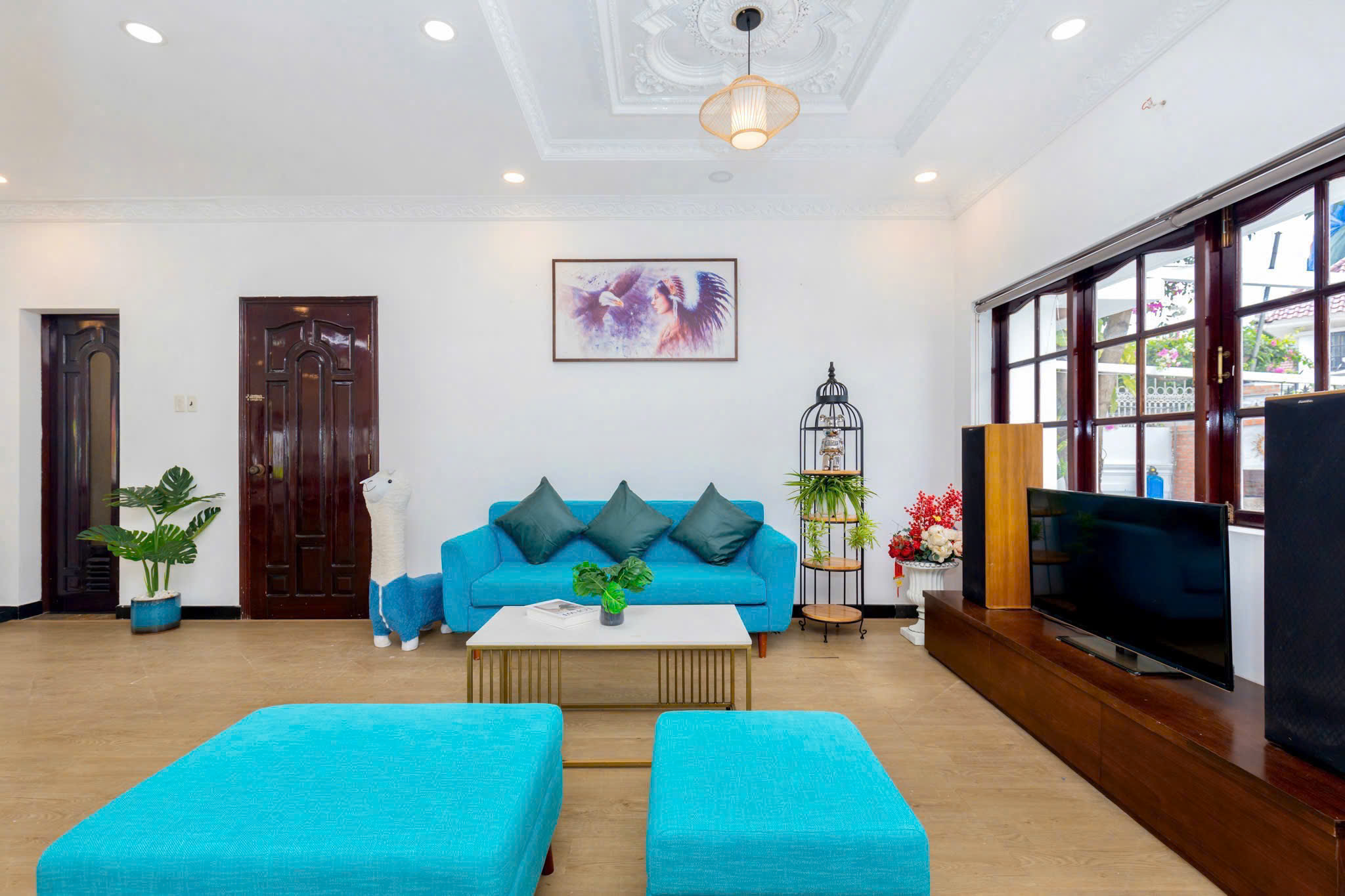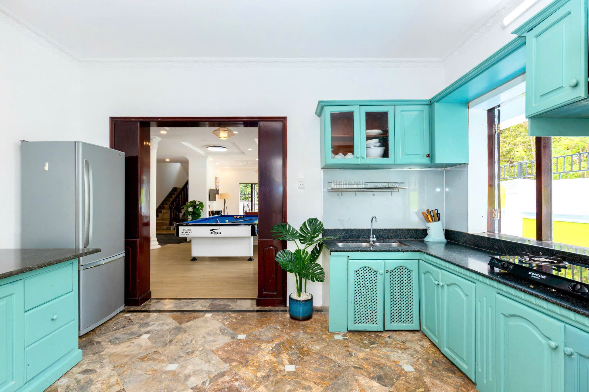 Villa bao gồm 6 phòng ngủ ( 2 phòng dưới trệt + 4 phòng lầu 1 ) – ( 5 WC trong phòng khép kín ( 4 phòng 1 giường và 2 phòng 2 giường + 4 nệm thêm)