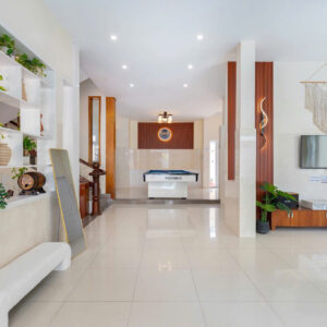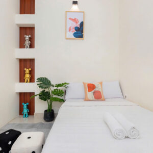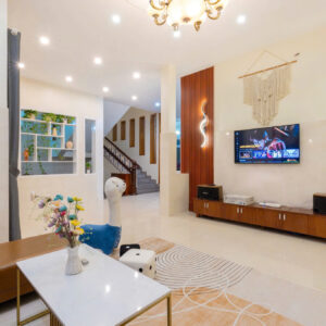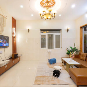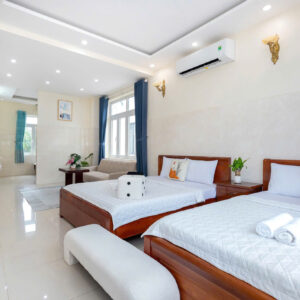 Villa bao gồm 5 phòng ngủ (4 phòng 1 giường và 1 phòng gia đình 3 giường + 1 sofa bed và 4 nệm thêm)