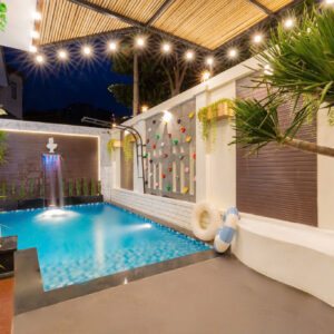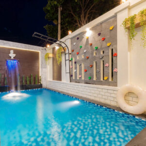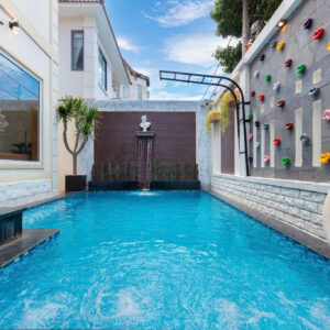 Hồ bơi 40m2 thác tràn + Sân vườn + Bếp nướng BBQ